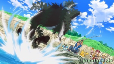 Gemeinsam können die beiden Team Rocket besiegen und mit Pikachus Donnerblitz werden diese in den Himmel gefeuert. Die Freunde loben ihre Pokémon, auch wenn diese wieder anfangen, zu streiten.
