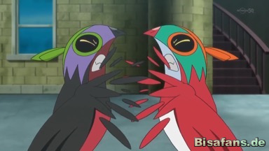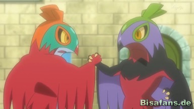 Ash will eingreifen, doch die beiden Resladero greifen da ein. Team Rocket ruft Maaiika und Bakeccha und lässt die Pokémon angreifen. Von einem Psystrahlt wird dabei Pikachu außer Gefecht gesetzt, während die Resladero allen Attacken ausweichen können. Schließlich stehen sie Rücken an Rücken und erkennen, dass sie zusammenarbeiten müssen. Daher geben sie einander die Hand.