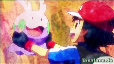 Ash sieht sich etwas um und entdeckt einen Fluss. Er nimmt das schwache Pokémon und bringt es zum Fluss. Da der Weg zum Fluss jedoch sehr steinig ist, warnen seine Freunde ihn davor. Schnell rutscht er aus und stolpert den Weg herunter. Direkt vor ihm liegt jedoch ein riesiger Fels im Weg, gegen welchen er, Pikachu und Viscora stoßen würden. Jedoch kann Ash rechtzeitig ausweichen. Als ein zweiter Fels vor ihnen liegt, setzt Pikachu Eisenschweif ein, um ihn zu zerstören. Dies gelingt ihm aus und Ash scheint beinahe am Fluss zu sein, als er über einen Stein stolpert und Viscora ihm aus der Hand fliegt. Ash fängt es jedoch im Flug auf und beide landen gleichzeitig im Wasser.