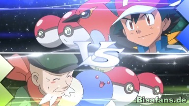Schließlich kann der Arenakampf, bei dem Viscora zuschauen darf, beginnen. Es sollen drei Pokémon eingesetzt werden, und Amaro startet mit Papungha, während sich Ash auf Dartignis verlässt.