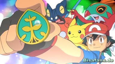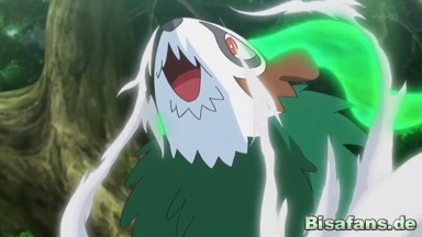 Ashs Hochstimmung wird aber durch ein Holzgeweih getrübt, und mit einem weiteren Egelsamen kann Amphizel gefesselt werden. Daraufhin ist Ash vollkommen entsetzt und weiß nicht, was er machen soll. Pikachu aber kann ihn aufheitern und er ruft Amphizel zu, dass sie niemals aufgeben werden.