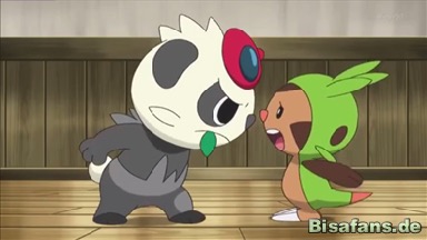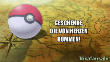 Als die Freunde sich gemeinsam da Feuerwerk ansehen, überreicht Ash Serena noch ein Geschenk. Das Geschenk, welches er vorhin erhalten hat.