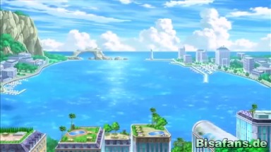 Ash und Serena sitzen inzwischen in der Einschienenbahn und schauen auf die Küste, bis sie in der Einkaufsmeile ankommen. Sie beiden fangen an, sich die Läden anzusehen. Während Serena einige Accessoires bewundert, findet Ash etwas anderes, was ihm gefällt, jedoch etwas zu groß ist.
