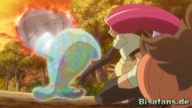 Als Jessie dies hört, seufzt sie und wendet sich Woingenau zu. Sie verabschiedet sich von dem Pokémon und wünscht ihm alles Gute, während sie sich ihre Uniform wieder anzieht.