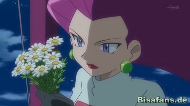 Ebensolche Blumen betrachtet auch Jessie, als sie sich im Heißluftballon Gedanken darüber macht, dass sie zu Team Rocket gehört, da sie hier die besten Freunde, die sie sich wünschen kann, hat. Damit lässt sie die Blumen los, die langsam weggleiten.