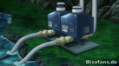 Mauzi stellt inzwischen auf Autopilot, während James das Loch absichern lässt, um einen Absturz zu verhindern. Anschließend will Team Rocket gegen die ungebetenen Gäste vorgehen.