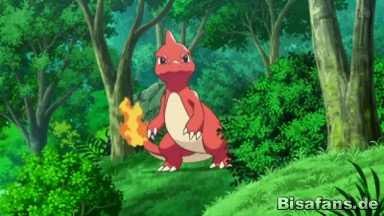 Aufgrund Rascheln, drehen sich die Freunde um und sehen, wie ein Lizardo aus dem Gebüsch tritt. Ashs PokéDex liest dessen Daten vor, während Pikachu und Dedenne freudig auf das Feuer-Pokémon zu rennen. Dieses greift sie aber mit einem Flammenwurf an, und sie rennen zurück in Sicherheit. Der Trainer des Glutexo, Trovato, kommt aus dem Gebüsch und wird von Glutexo Flammenwurf getroffen. Er ist erstaunt, dass er die drei Freunde an diesem Ort wiedertrifft.