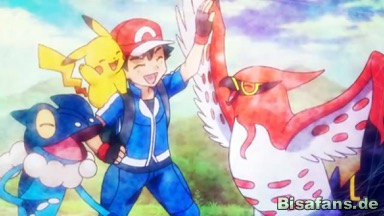 Pikachu fällt jedoch zurück, wird von Dartigniss Stahlflügel befreit und von Ash aufgefangen.