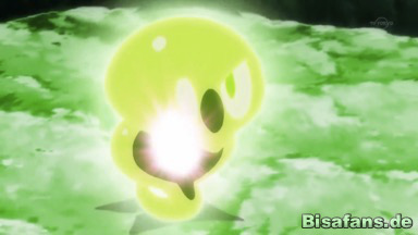 Schließlich essen sie zu Abend, doch Blobby scheint nichts zu wollen. Sowohl Pofflés als auch Beeren lehnt es ab. Stattdessen springt es auf einen Stein und scheint Photosynthese zu betreiben. Tatsächlich aber sucht es nach Zygarde-Zellen und scheint etwas zu entdecken. Schließlich schläft es ein.