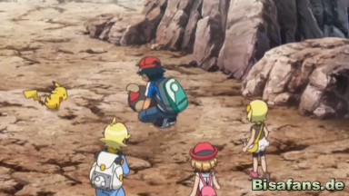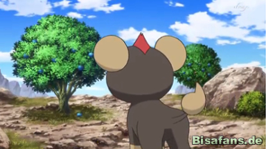 Da die Tsitrubeere damit verschwunden ist, setzt das Leufeo seine Reise weiter fort und Ash und seine Freunde folgen ihm während auch das Pyroleo zusieht. Der Weg ist holprig und kräftezehrend, aber mit seinen anspornenden Erinnerungen im Hinterkopf nimmt es jede Hürde auf sich. Zumindest bis es am Fels ausrutscht und fast von der Klippe fällt. An dieser Stelle greift Ashs Amphizel dem Pokémon mithilfe einer Attacke unter die Arme, zeigt sich jedoch nicht, damit das Leufeo weiterhin an sich selbst glaubt.