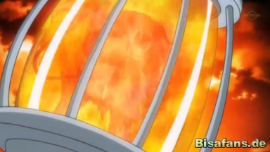 Team Rocket nutzt dieses Feuer und schießt es durch den Glurak-Roboter auf die Gruppe. Auch Amphizel kann mit einer Aquawelle nicht viel dagegen ausrichten, also schreitet das Leufeo durch das Feuer an seinen Vater heran und hält ihm außerordentlich tapfer stand bis sich das Pyroleo wieder beruhigt hat. Amphizel setzt darauf Zerschneider ein, um die Kapsel in der das Pyroleo gefangen ist, zu zerstören und Pikachu und Leufeo beenden das ganze mit einem Donnerblitz und einer Feuer-Attacke, die Team Rocket in die Luft befördern. Abschließend trennen sich der Weg unserer Freunde, des Pyroleos und des Leufeos, das mit diesen Ereignissen bewiesen hat, einen großen Schritt in Richtung Selbstständigkeit gemeistert zu haben.