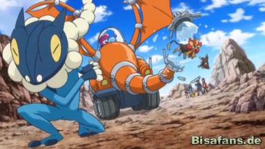 Auf dem Weg nach Fractalia City durchqueren Ash und seine Freunde einem Grasland. Besonders Citro scheint der anstrengende Weg zu schaffen zu machen, worauf Heureka ihm spielerisch mitteilt, dass sie ihn zurücklassen, wenn er jetzt eine Pause einlegt. Es bleibt nicht viel Zeit, um darüber zu lachen, denn plötzlich werden sie von seltsamen Geräuschen überrascht. Sie sehen anschließend einige Leufeos und Pyroleos auf der Wiese.