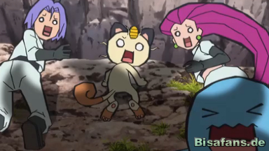 Nun grummelt sein Magen, worauf ihm Serena ein Pofflé anbietet, das es aber ablehnt, weil das wütende Bild des Pyroleos noch in seinem Kopf umherschwirrt. Gleich danach entfernt sich das Leufeo von den anderen und auch Team Rocket beobachtet es mit Ferngläsern. Sie haben zuvor gesehen, wie stark seine Weiterentwicklung ist und wollen das Pokémon daher fangen. Mit einer Tsitrubeere, die auf einer Angel befestigt ist, versuchen sie das Pokémon anzulocken und bemerken zu spät, wie sich der Schatten eines Pyroleos über ihnen ausbreitet und binnen weniger Sekunden soweit ausschaltet.