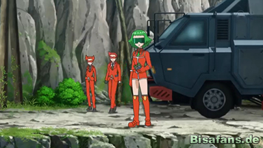 Kurz bevor es Team Flare gelingt Blobby, bzw Z1, einzufangen, mischt sich nun auch Team Rocket ein. Auch sie haben es auf das begehrte Pokémon abgesehen. Nun sind es also schon drei Seiten die sich um Heurekas kleinen Freund streiten. Ash schickt sein Quajutsu aufs Feld. Es gelingt ihm schnell Blobby zurückzuholen.