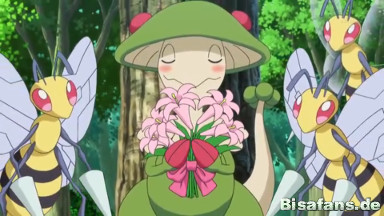 Dafür sinnt es nach Rache und stellt sich den Pokémon entgegen. Kapilz befiehlt den Bibor, die beiden anzugreifen,
