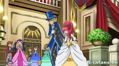Das Licht dimmt und Pierre erscheint mit Arie und ihrem Fennexis. Arie und Serena sehen sich gegenseitig und lächeln,