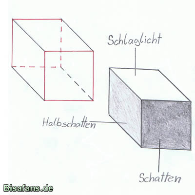 Daneben seht ihr noch den fertigen Quader plus Lichteinfall von links oben.