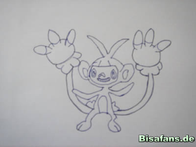 Jetzt den Körper. Man kann ihn in jeder Pose malen. Ich habe es eben so gemacht.
