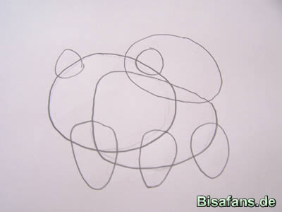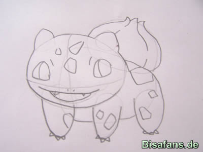 Rücken eine Knospe machen. Zeichne oben an der Knospe drei Zacken,