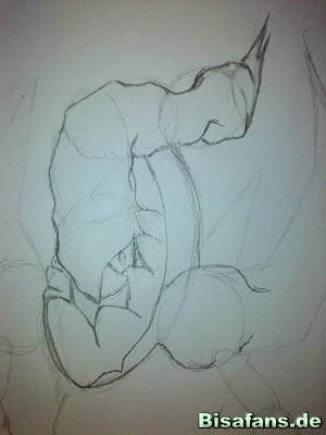 - Den Schwanz zeichnet ihr genau so ein, eben auch mit 2 Zacken am Ende.