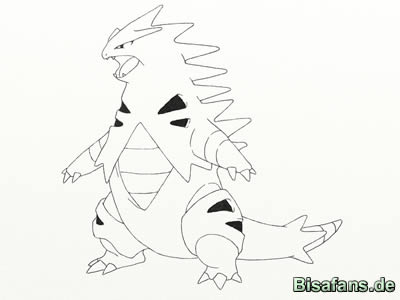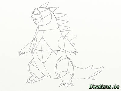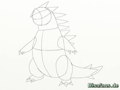 Jeweils drei dreieckige Krallen an Händen und Füßen und die Zacken