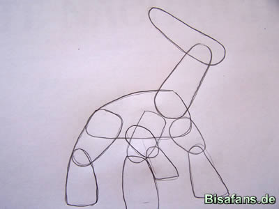 zeichnen: Also, als Erstes zeichnest du Kopf, Hals und Körper.