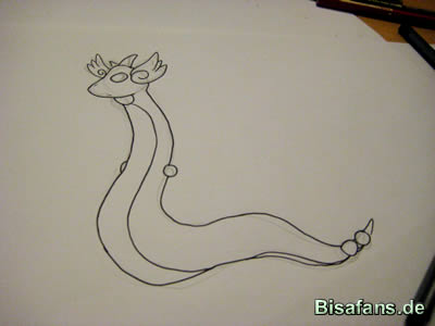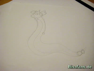 Kopf, dann den Schlangenkörper. Füge nun vorne eine Schnauze ein.