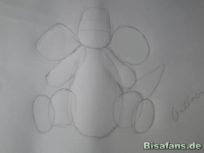 Noch ein Tipp: Malt die ersten drei Schritte mit dem 2H-Bleistift, denn die Linien lassen sich gut weg radieren. Die Linien der anderen Schritte, könnt ihr dann mit dem HB-Bleistift zeichnen.