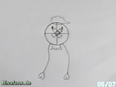 Dann malt ihr eine "Krone"unten an den Kopf.