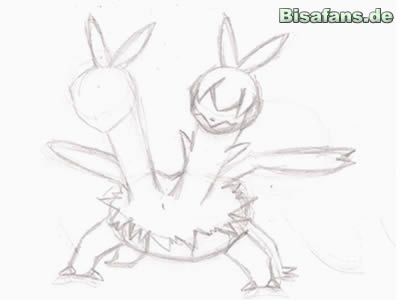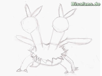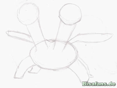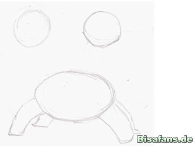 Oval für den Körper und zwei kleine Kreise für die Köpfe.