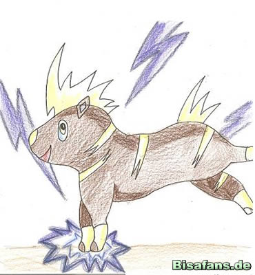 den Blitz auf dem Kopf und den Schwanz fertig.