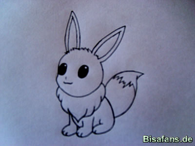 Kopf zeichnet ihr auch nach nach. Das Fell unter Evolis Kopf