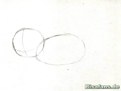Kreise nebeneinander. Das werden die Pfötchen. Neben das rechte