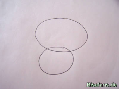 unter dem Kopf einen etwas kleineren Kreis für den Körper.