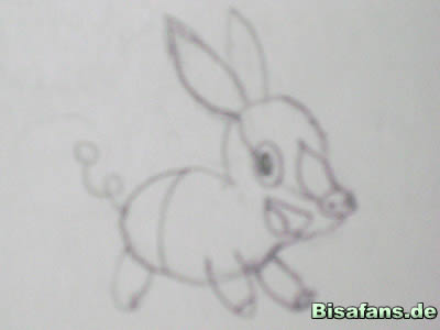 Dann füg die Ohren hinzu. Danach folgen noch die Füße und das