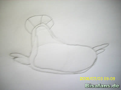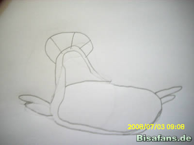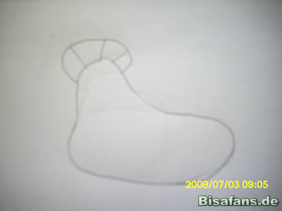 Jetzt die Hilfslinie. Zwischen der Fläche für den Schatten und der Hilfslinie ist es heller aber immer noch Schatten!!