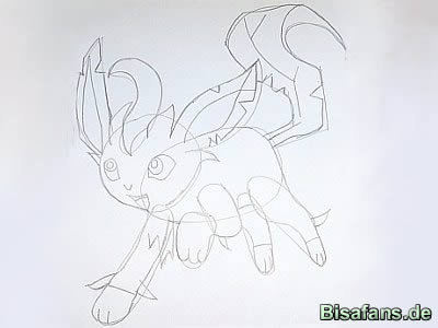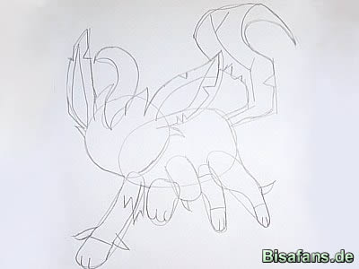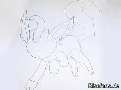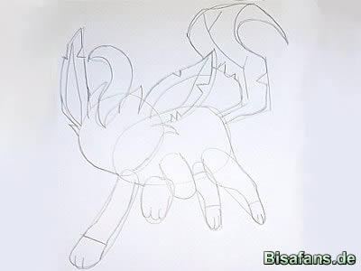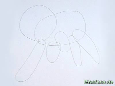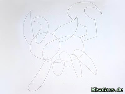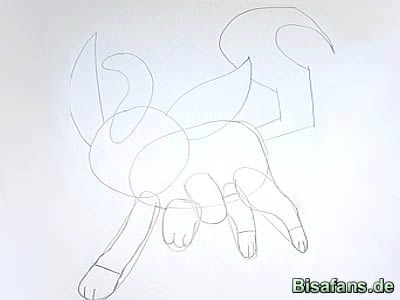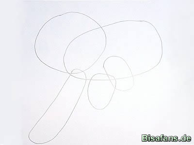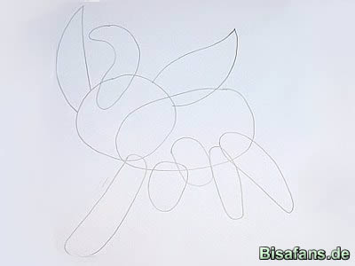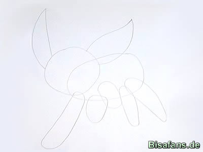 Beine müsst ihr drei ovale setzen, die zum Bein hin offen sind.