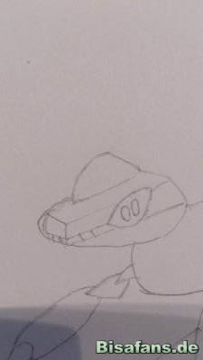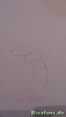 zeichnet und in der Mitte des Gesichts auch eine. Dann die Augen: