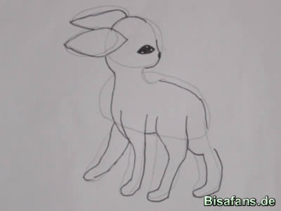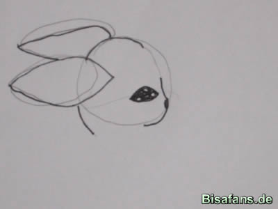 bisschen spitz. Die Augen sind auf der Mittellinie, die könnt ihr