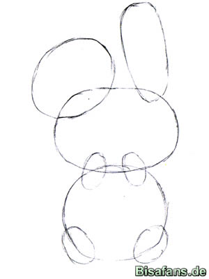 Oval, für den Körper einen Kreis, für die Füße und Arme/ Hände
