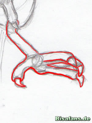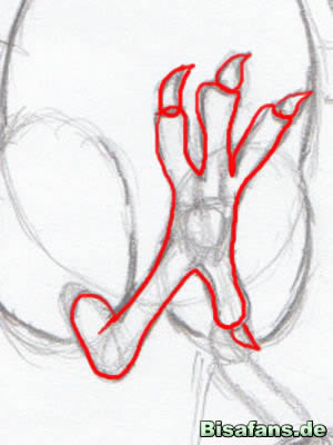 Zeichne nun die rechte Kralle, die zwar