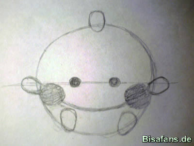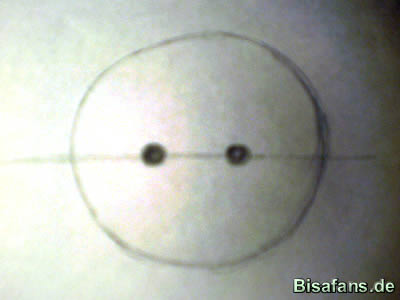 die Mitte des Kreises und platziert die Augen auf dieser Linie. Der