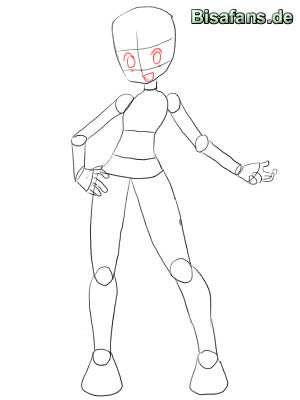 - An dem Oberkörper die Kreise, also die Schultern, einzeichnen.