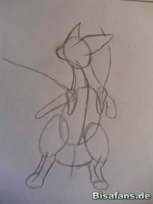 den Schwanz nachziehen und schonmal ein Oval für das Auge malen.