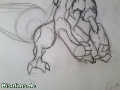 bei Zekrom, der linke aber sehr „eckig“, wie der Kyurems. Die Beine
