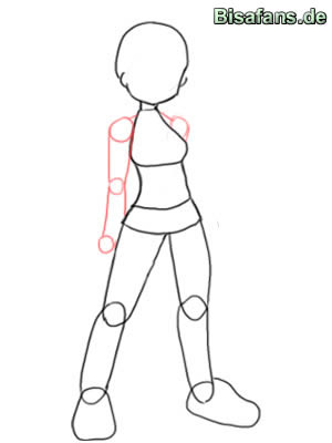 Schultern, einzeichnen. Dann zwei Striche, oder eine gestreckte