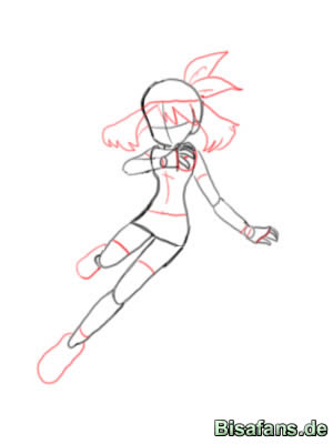 - Dann zeichnet ihr den Oberkörper, welcher sich "eigentlich" nur aus zwei Trapezen bildet: ein umgedrehtes oben (Brustbereich) und eins richtig rum, der Hüftbereich, etwas dadrunter.
