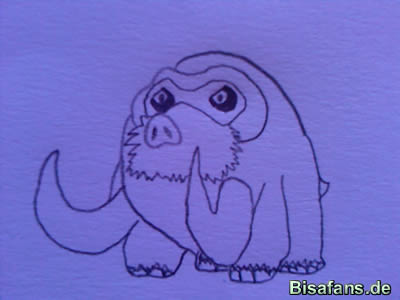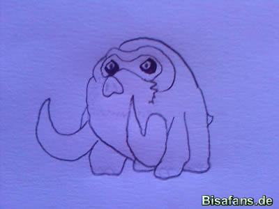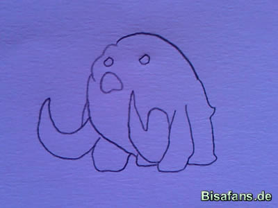 Als erstes zeichnet ihr den Körperumriss, anschließend werden noch die Stoßzähne, die Augen und die Nase gezeichnet.