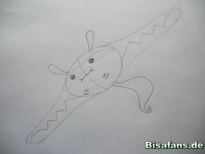 dieser Linie werden die Fühler gezeichnet. Sie fangen sehr schmal