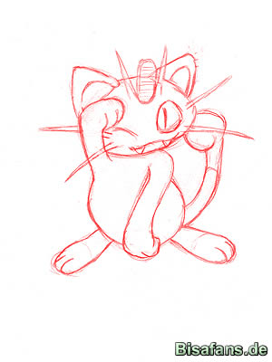 gebogenen Strich etwas oberhalb von Mauzis Schweif zu machen.